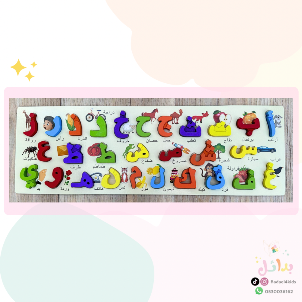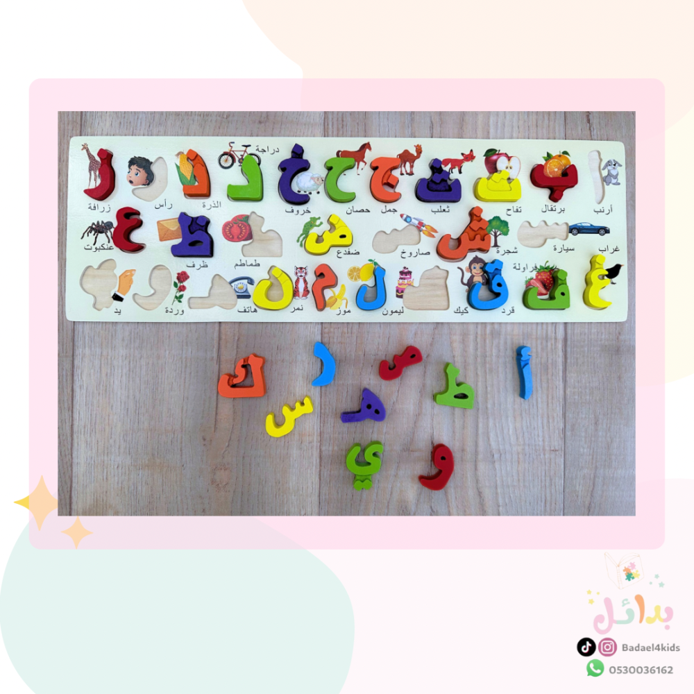 عبارة عن لوحة خشبية تساعد في تعليم طفلك الحروف العربية بطريقة ممتعة ومسلية 👧🏻👦🏻✨