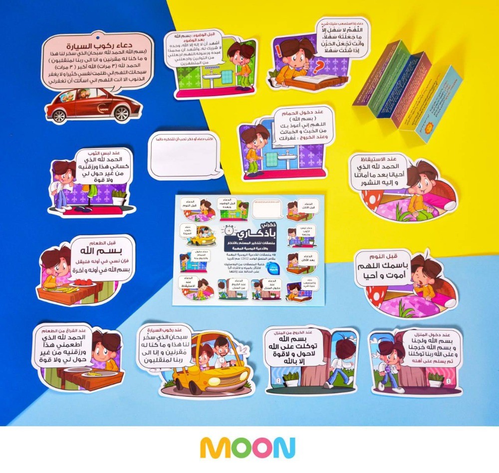 مجموعة من 12 ملصق من الأذكار اليومية مع كتاب أذكار الصباح والمساء منها